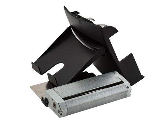 The cutter unit for the H series printer is quickly attached to the front of your printer and will cut through the backing of your label roll to supply single labels. Labels are collected in the attachment on the front of the printer and are always accesible during use. The cutter is not designed to cut through the label, if used this way, will quickly gum up causing incomplete cuts.